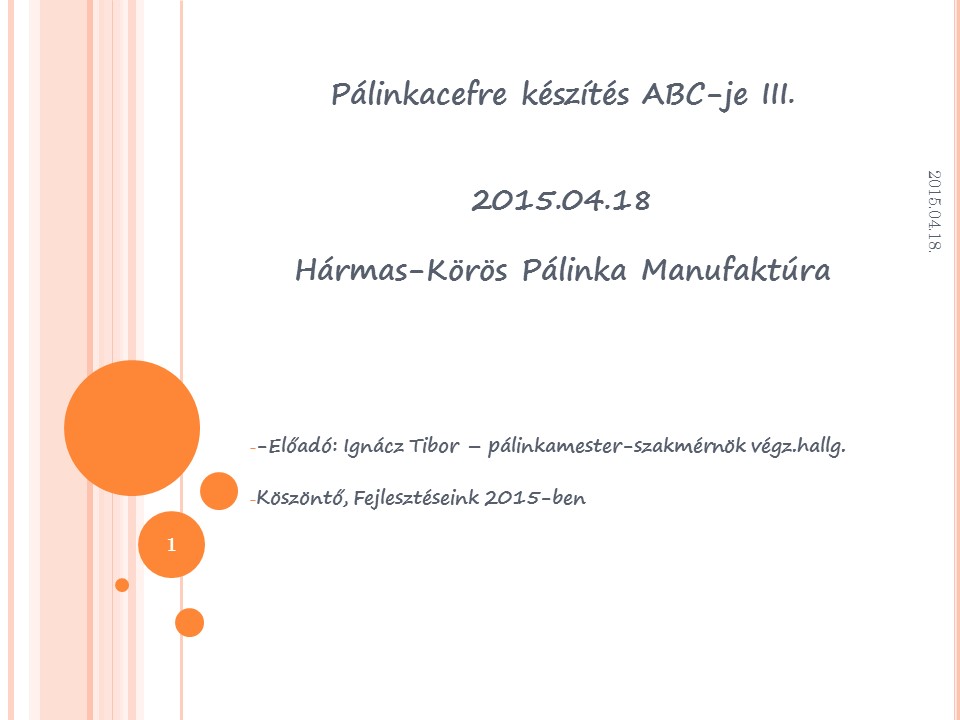 Harmadik Pálinkacefre készítés ABC-je szakmai rendezvény ,